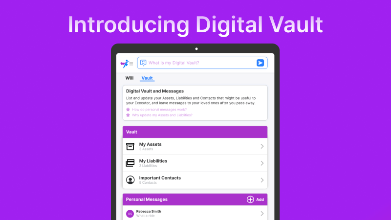 Looking for a secure, organised, and compassionate way to make life easier for your Executor and leave messages for loved ones? We’re thrilled to launch the Digital Vault—your all-in-one secure hub that helps you prepare for life’s uncertainties while giving you peace of mind today.