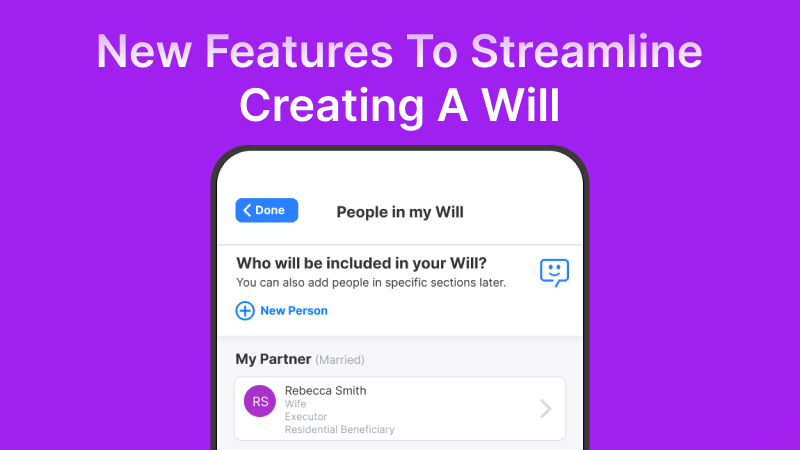 We’ve revamped People in my Will. Now integrated into the Checklist, the ‘People in My Will’ section automatically links to your relationship status and number of children, ensuring no key individuals are overlooked.