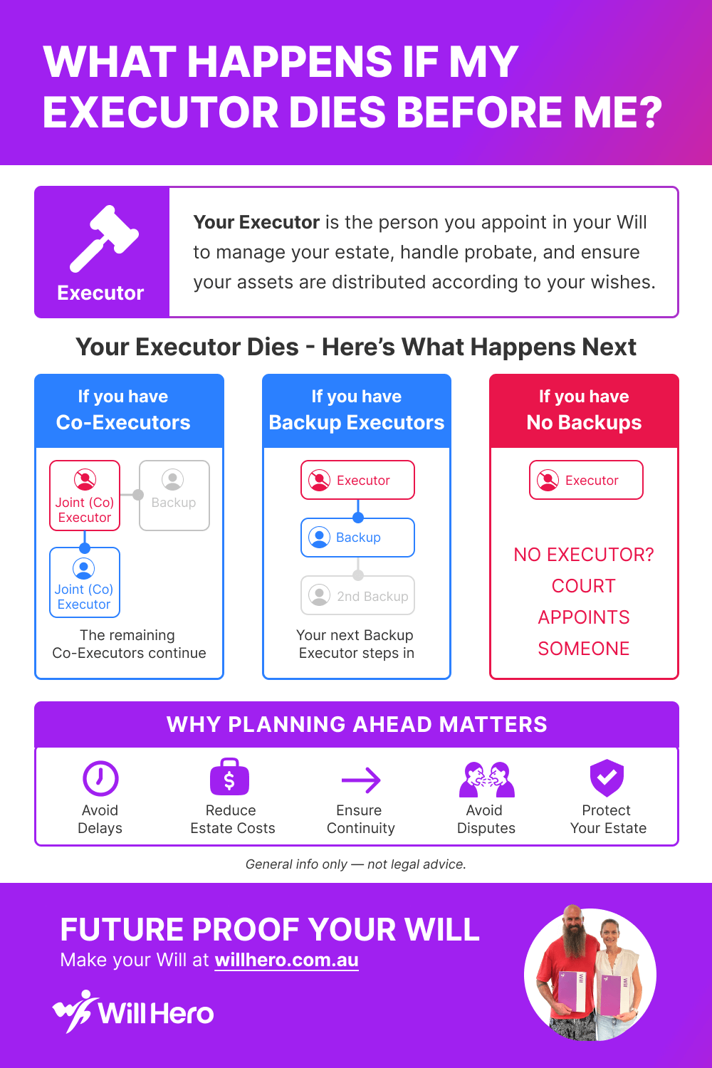 Your Executor passes away before you—what happens to your Will? Learn how backup executors work and how to protect your estate with proper executor planning.