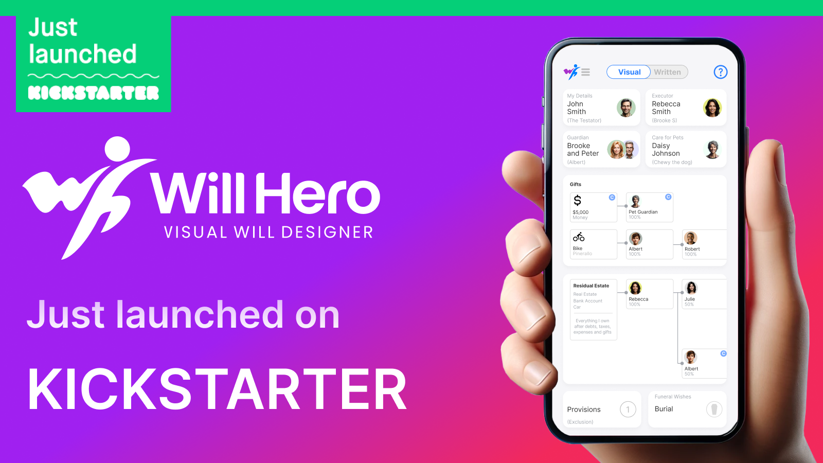 You can now find Will Hero on Kickstarter. Join us in transforming how people approach estate planning by making Will-writing more visual, interactive, and even fun.