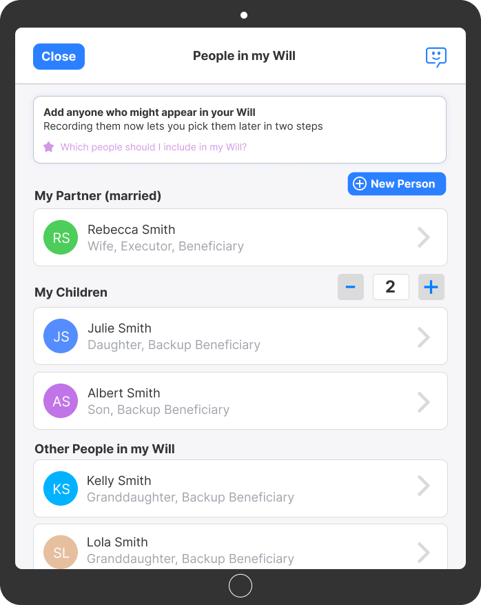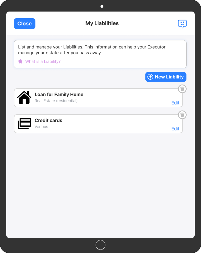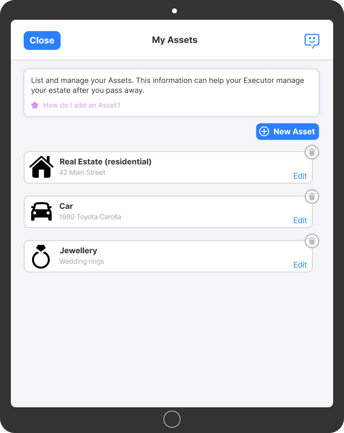 Keep your assets, liabilities, and important contacts up-to-date while leaving detailed information to help your Executors navigate probate, locate assets, and efficiently finalise your estate.